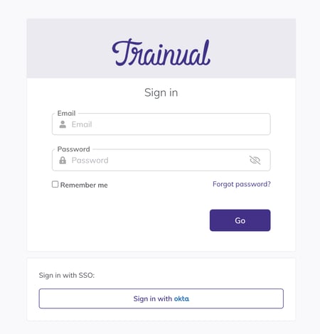 Sign out of your Trainual account. Then, head back to the login page. You should now see a “Sign in with Okta” button.