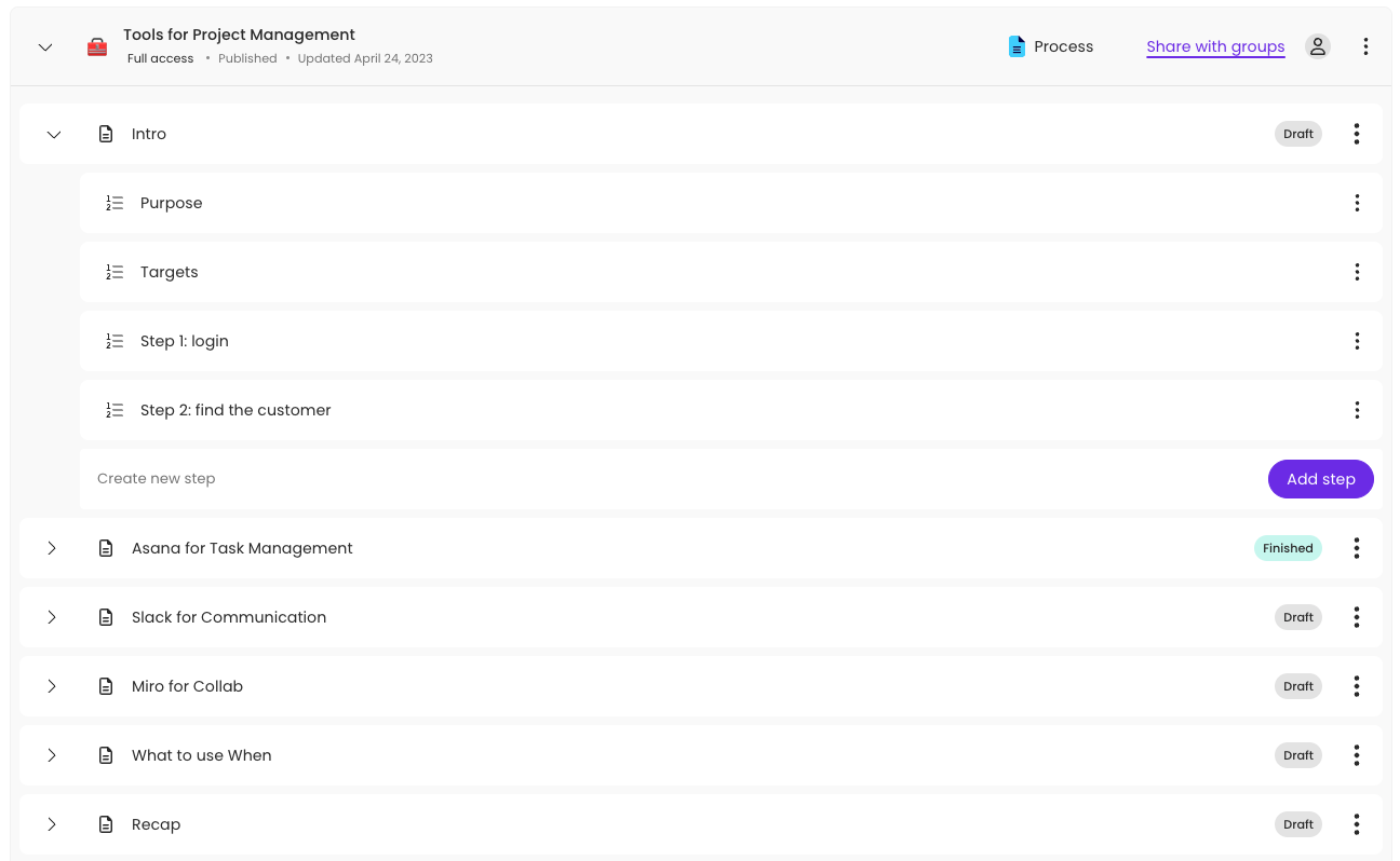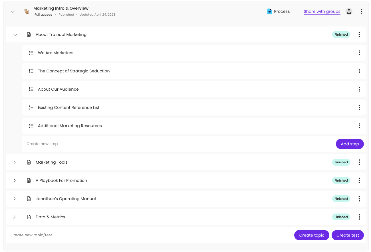 Content in Trainual is organized into subjects, topics, and steps. Here, we will go over the differences between subjects, topics, and steps and give you tips on how to structure your content using each organizational level.