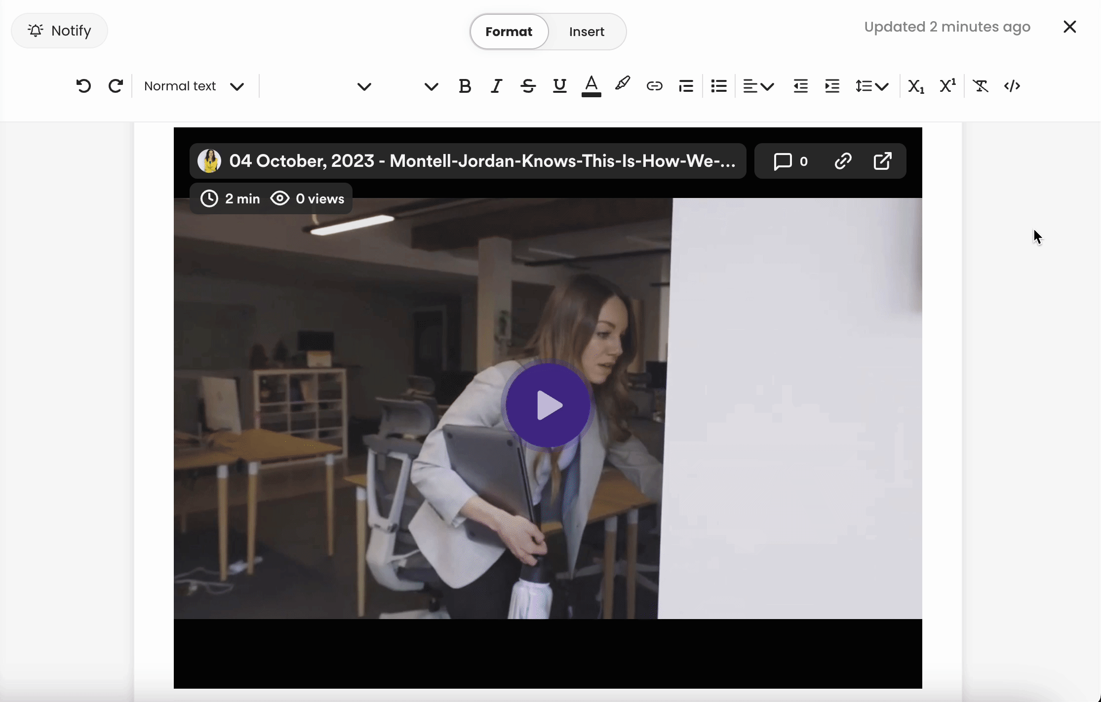 Looking for a simple and efficient way to get your prerecorded Loom videos into your content? Just grab your Loom video URL and plug it into the Quick Embed feature from the text editor. This easy action will save you time and make you feel like a tech wizard! 🧙♂️