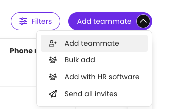 Click on the drop-down arrow on the "Add teammate" button on the top right-hand corner of the page