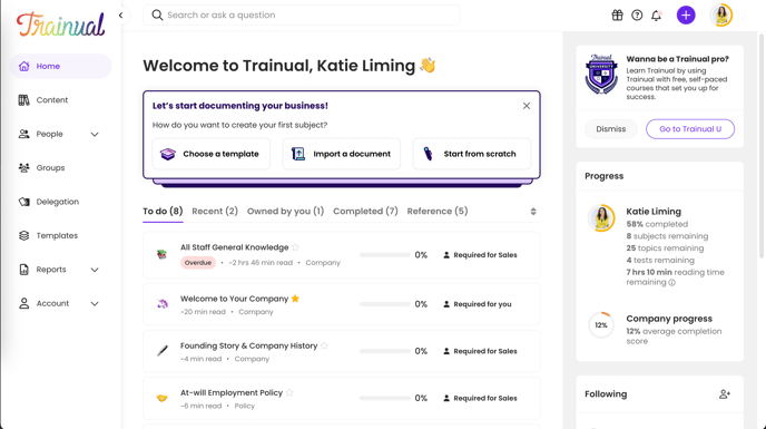 Team members in your account with the General permission levels have a different and more limited experience in Trainual than all other permission levels. Find out more below!