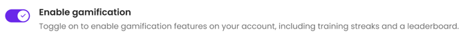 - Toggle on or off the "Enable gamification" setting.