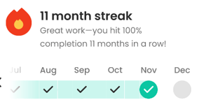 - ๐ฅ Tracking streaks. Users who maintain a 100% training completion at any point during the company set streak frequency lock in their progress.