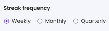 - Adjust the streak frequency: It's set to weekly by default, but you can update it to monthly or quarterly, if preferred.