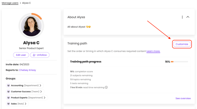 - Hit the "Customize" button in the corner of the section labeled "Training path."