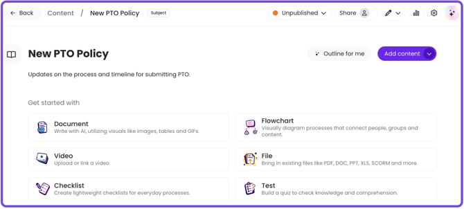 📸 Example: A subject outline created from Slack inside of Trainual: