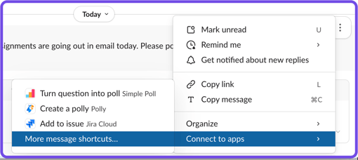 - Select "Connect to apps" then "More message shortcuts" from the menus.