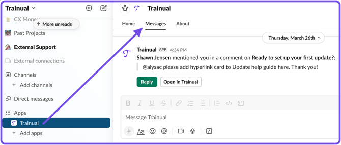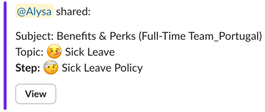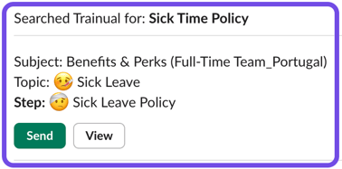 - Send button — Perfect for pointing a teammate to the right Trainual documentation without leaving Slack.
