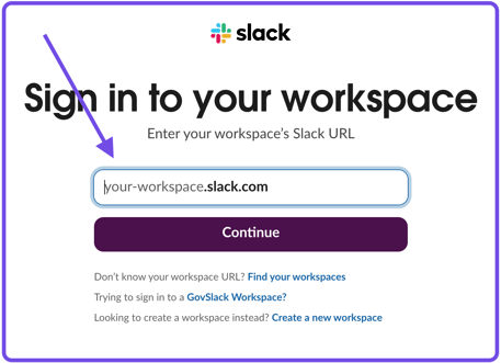 - Enter your workspace's Slack URL on the Slack authorization redirect page.