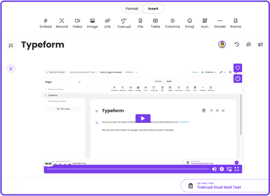 Built right into your content editor, your recorder helps you go from "do I have time to write this?" to "it was captured live in Trainual right now" without switching tabs. Tribal knowledge into visual and audio trainable content β quick as a flash. β‘