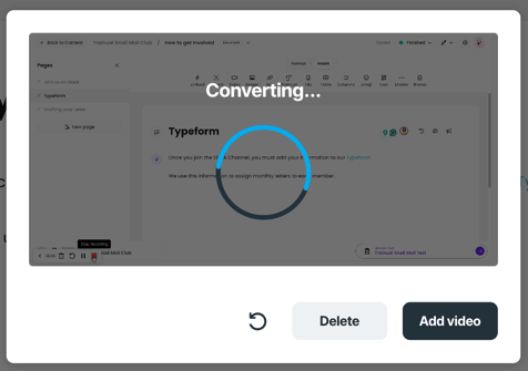 - Keep building while your video processes. Drop your recording into your content, and while it loads, keep documenting.