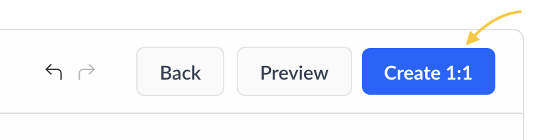 When you're ready to complete the 1:1 setup, click the blue "Create 1:1" button in the upper right corner.