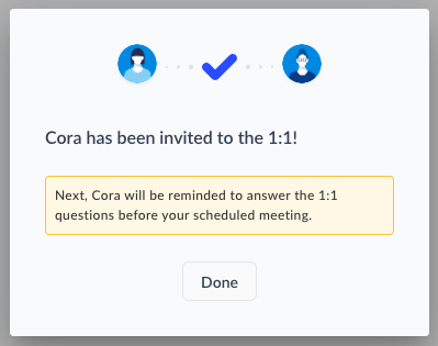 Once you confirm that you want to invite the user to the 1:1 you've created, they will receive an email notification letting them know they have a 1:1 set up and inviting them to their Uptick account.