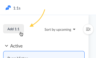 If you already have 1:1s set up and are looking to add a new 1:1 for another person, on the My 1:1s page click "Add 1:1" in the upper left corner. This will bring you into the 1:1 setup.