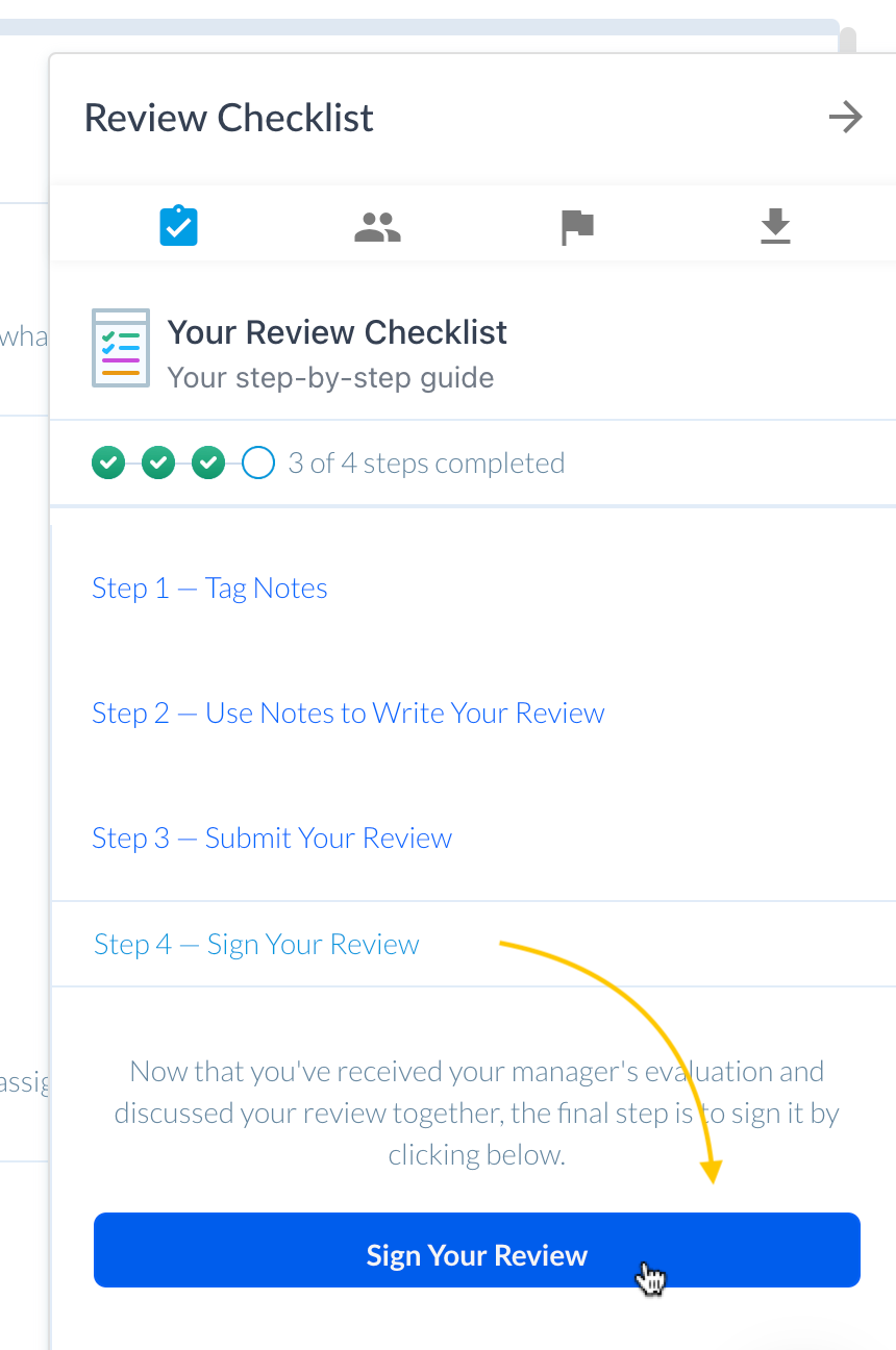 Note: This signature step is acknowledging that you have received your review, not that you agree with everything in it.